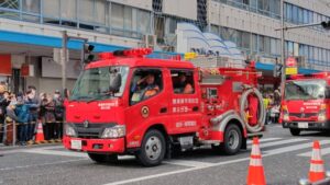 横須賀市消防パレード 2026年1月11日 2026年1月17日 横須賀市消防パレード 消防局、消防団そして米海軍消防が一同に会してのパレードを開催しました。多くの市民がその勇姿を見るために集まりました。 消防団音楽隊を先頭に女性消防団が行進、その後各地区の消防団が車列を組んで行進しました。