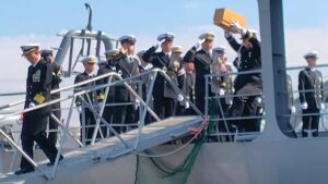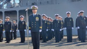 自衛艦旗返納式 2026年3月23日 2026年3月26日 自衛艦旗返納式 海上自衛隊の海洋観測艦「わかさ」が老朽化のため退役を迎え、自衛艦旗返納式が開催されました。「わかさ」は1986年に就役し現役の自衛隊艦船では最古参になります。 40年にわたり海洋に水温や潮流、海底地形などのデーター収集任務を担ってきました。今回を最後に新造艦「あかし」が横須賀基地に就役します。 長年にわたる功績に敬意を表します。