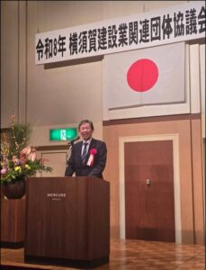 今回は、横須賀市建設業関連団体協議会賀詞交歓会に参加しました。災害に強いまちづくりにご協力いただいていることに感謝いたします。あまり話題になりませんが、災害時、災害発生後に1日でも早く、1時間でも早い復旧・復興を目指し活動されている事に併せて感謝いたします。安心・安全のまちづくの話題になると出てくる団体が消防、警察そして地域の町内会・自治会で建設業の名前はあまり出ません。