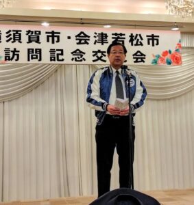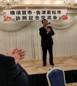 先月、友好都市20周年を迎え会津若松市内で記念行事を行い約90人の横須賀市民の方々が参加しましたが、今回会津若松市の市長様、議長様をはじめとして76名の方が来られました。